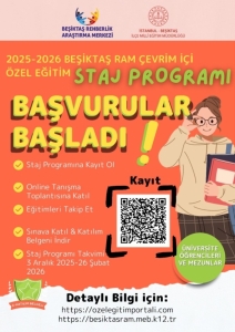 Milli Eğitim Bakanlığı Beşiktaş Rehberlik ve Araştırma Merkezi (RAM) iş birliğiyle, üniversite öğrencilerine yönelik Çevrim İçi Özel Eğitim Staj Programı…