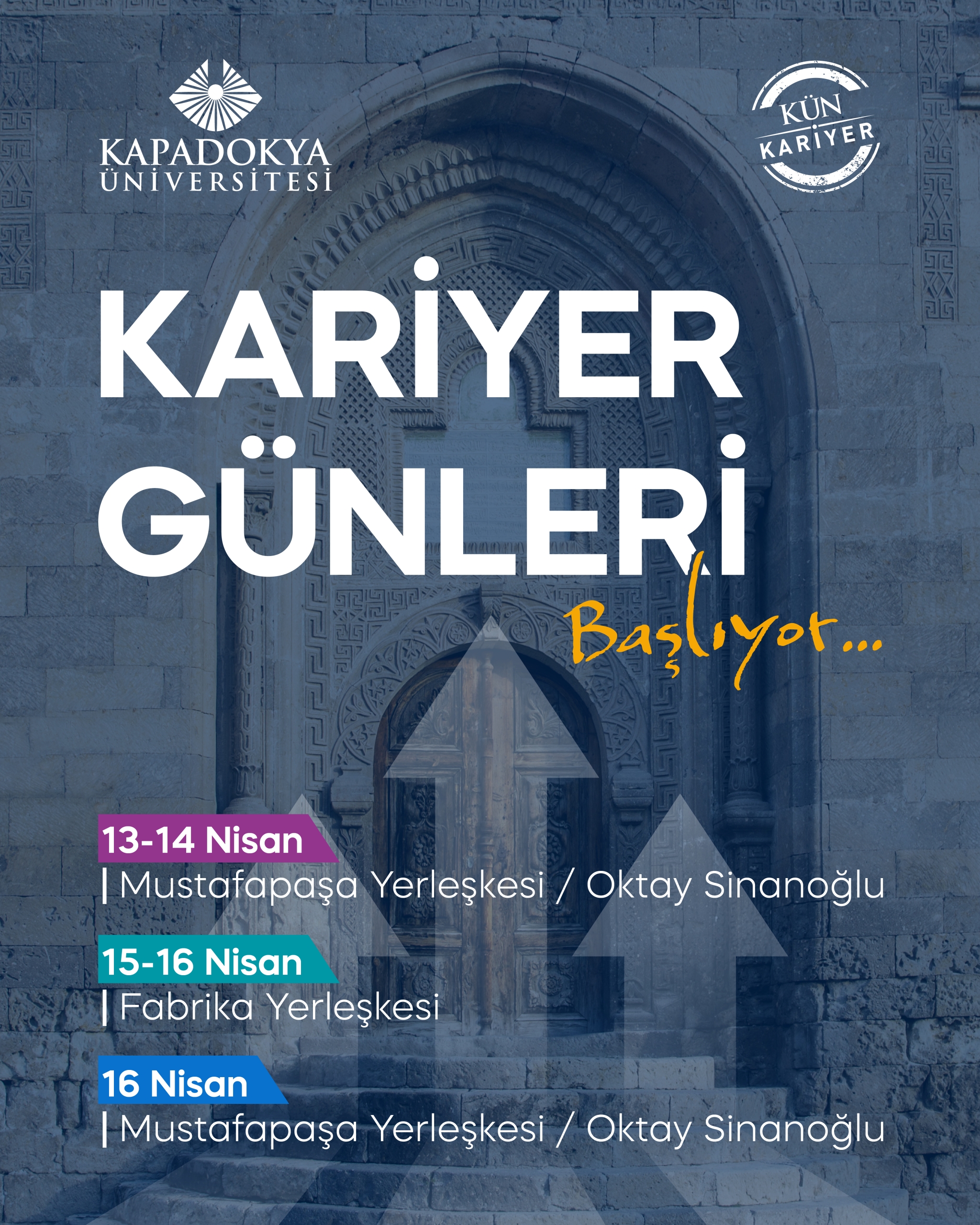 13–16 Nisan tarihleri arasında düzenlenecek Kariyer Günleri ile sektör temsilcileri, söyleşiler, stantlar ve kariyer fırsatları sizlerle buluşuyor. Kariyer yolculuğunuza yön verecek bu etkinlikleri kaçırmayın!